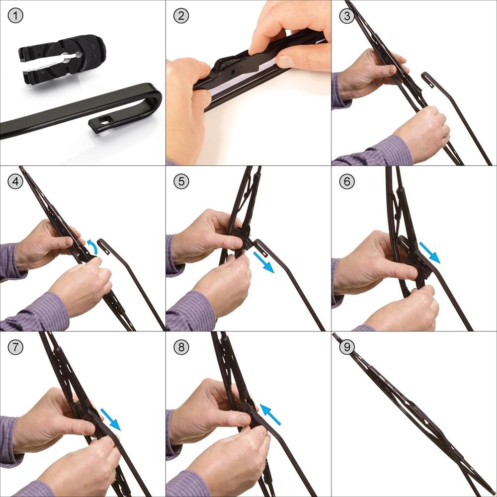 - adaptéry (části sloužící pro spojení lišty s ramenem stěrače) M2 + M9 .