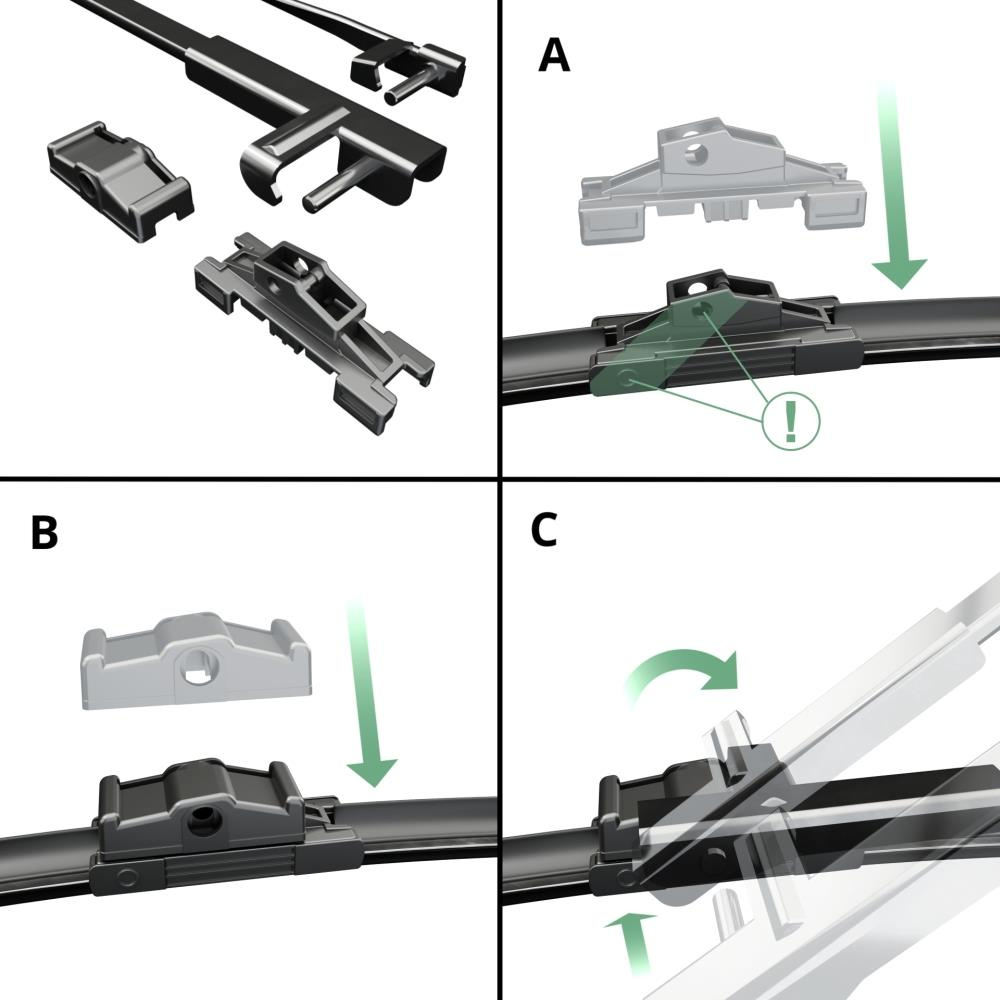 - adaptéry (části sloužící pro spojení lišty s ramenem stěrače) typ B .