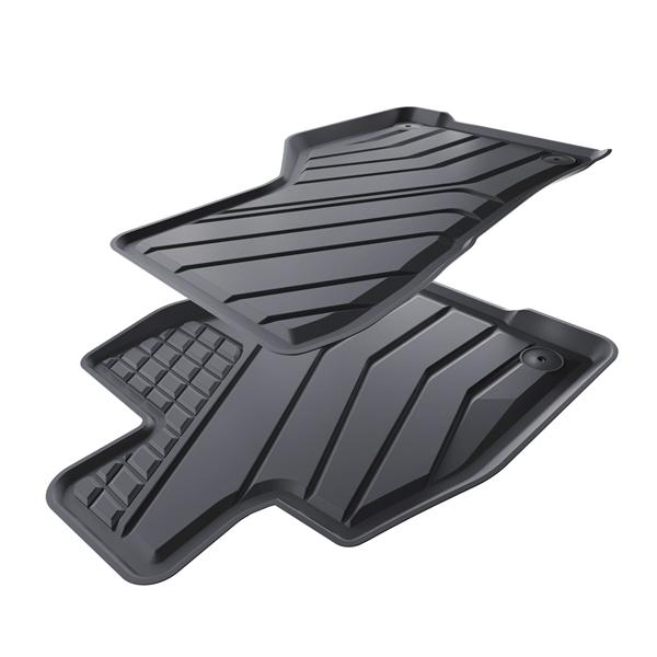 - Koberečky mají moderní vzor s matovou konečnou úpravou. Každá sada je vyrobena na míru pro konkrétní model a generaci automobilu, což zajišťuje stoprocentní přizpůsobení podlaze vozidla. Sada obsahuje také zarážky, pokud se v daném modelu automobilu vyskytují.