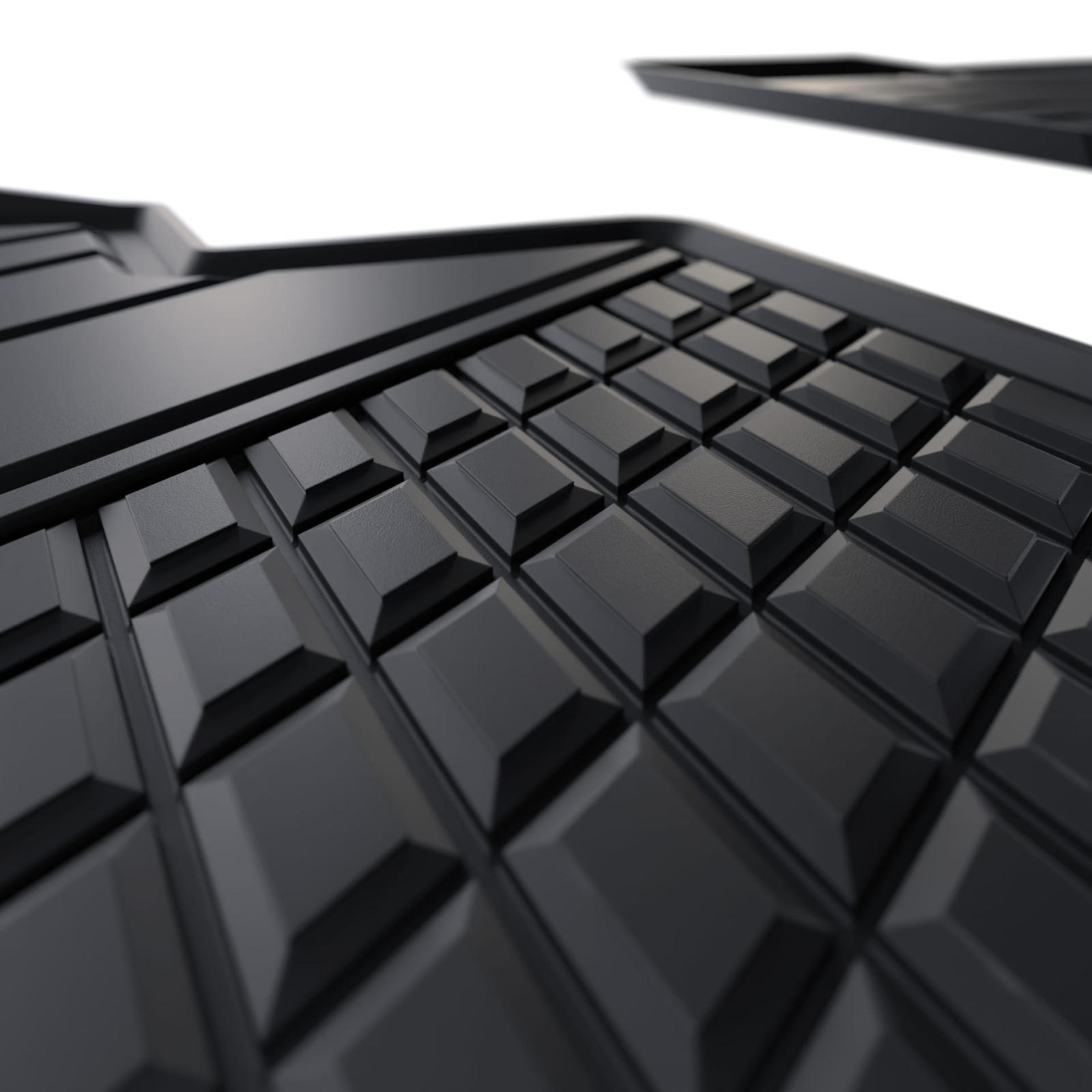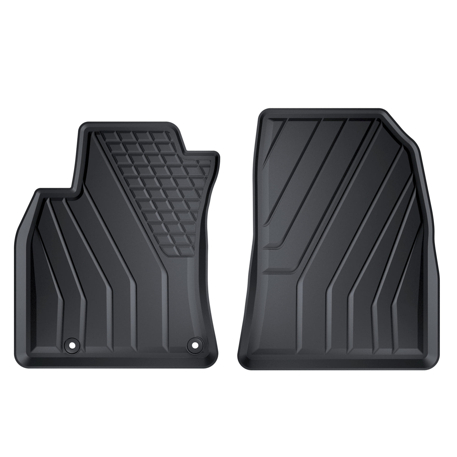 - Koberečky mají moderní vzor s matovou konečnou úpravou. Každá sada je vyrobena na míru pro konkrétní model a generaci automobilu, což zajišťuje stoprocentní přizpůsobení podlaze vozidla. Sada obsahuje také zarážky, pokud se v daném modelu automobilu vyskytují.