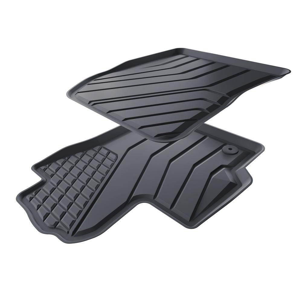 - Koberečky mají moderní vzor s matovou konečnou úpravou. Každá sada je vyrobena na míru pro konkrétní model a generaci automobilu, což zajišťuje stoprocentní přizpůsobení podlaze vozidla. Sada obsahuje také zarážky, pokud se v daném modelu automobilu vyskytují.