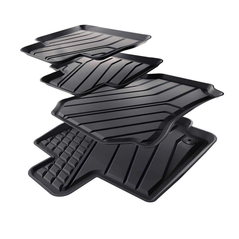 - Koberečky mají moderní vzor s matovou konečnou úpravou. Každá sada je vyrobena na míru pro konkrétní model a generaci automobilu, což zajišťuje stoprocentní přizpůsobení podlaze vozidla. Sada obsahuje také zarážky, pokud se v daném modelu automobilu vyskytují.