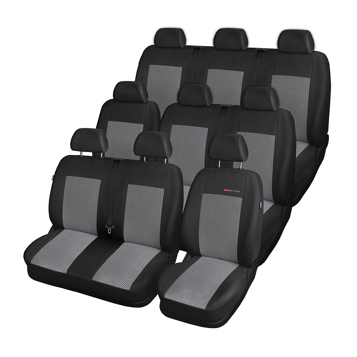Potahy šité na míru pro Ford Transit Custom I Van (2012-2023) na tři řady sedadel - návleky na autosedadla - E2