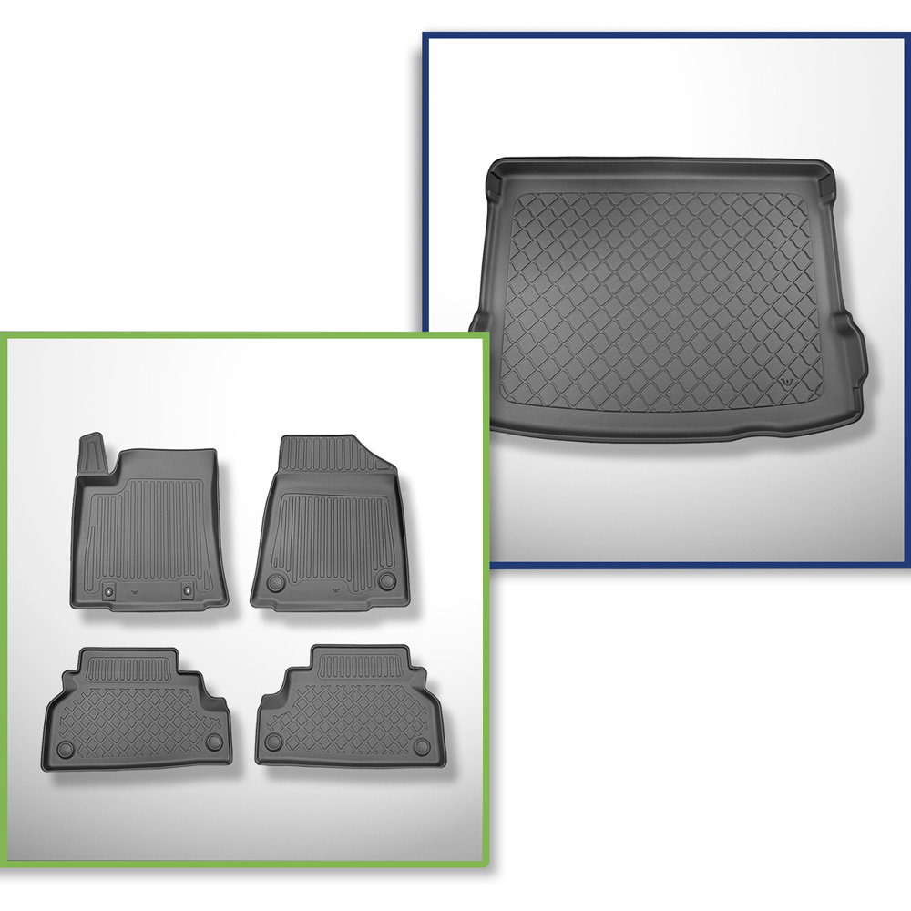 Sada rohož do zavazadlového prostoru a autokoberečky TPE na míru do: Hyundai Kona II SUV (04.2023-....) - horní zavazadlový prostor; pohyblivá podlaha v nejvyšší poloze; s i bez subwooferu
