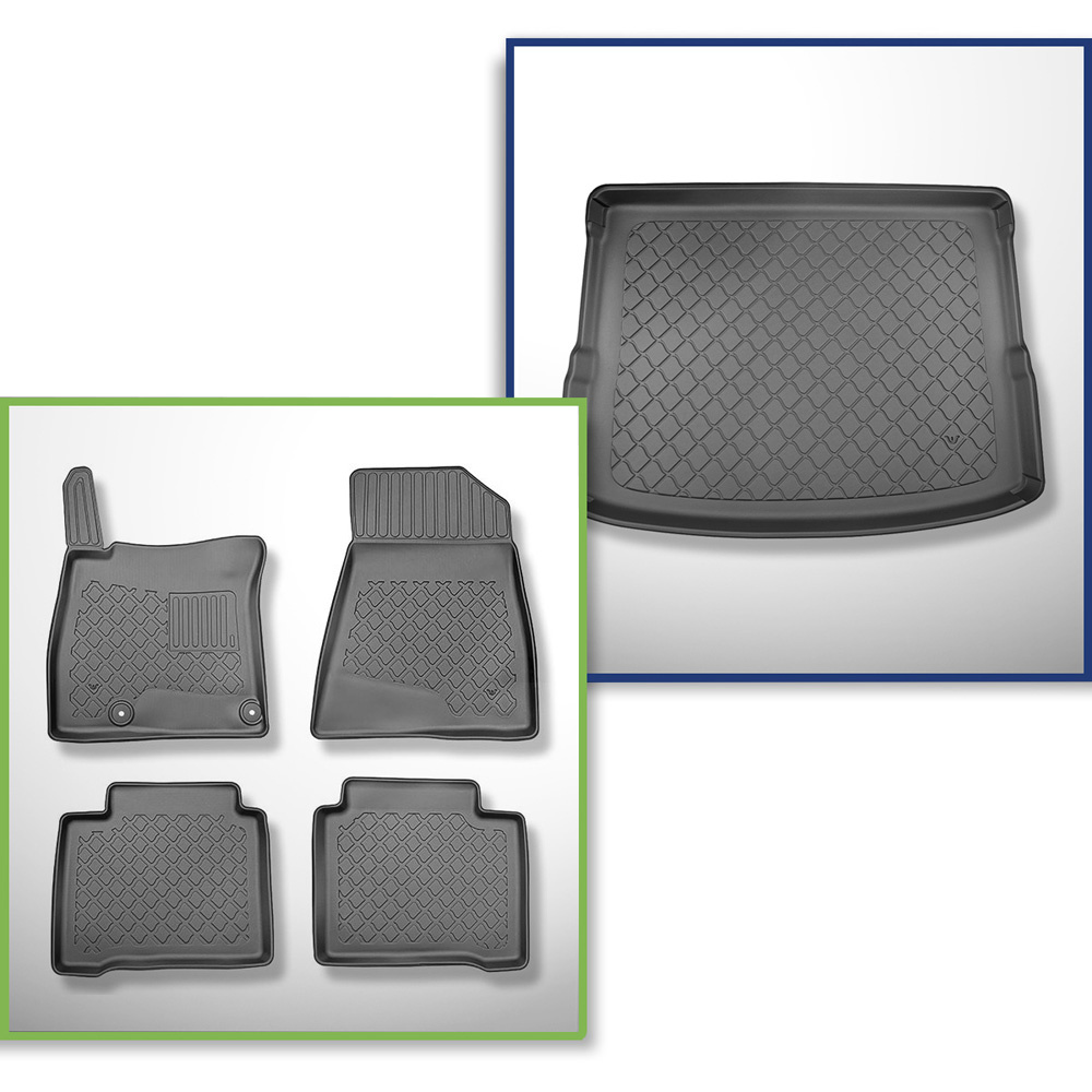 Sada rohož do zavazadlového prostoru a autokoberečky TPE na míru do: Kia Niro II (SG2) Crossover (06.2022-....) - HEV Hybrid; EV (electric); horní zavazadlový prostor; pohyblivá podlaha v nejvyšší poloze; ne pro verzi Plug-in Hybrid