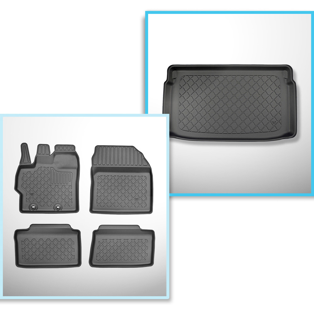 Sada rohož do zavazadlového prostoru a autokoberečky TPE na míru do: Toyota Yaris IV Hatchback (11.2020-....) - horní zavazadlový prostor; pro automobily s dvojitou podlahou v zavazadlovém prostoru; také pro hybridy
