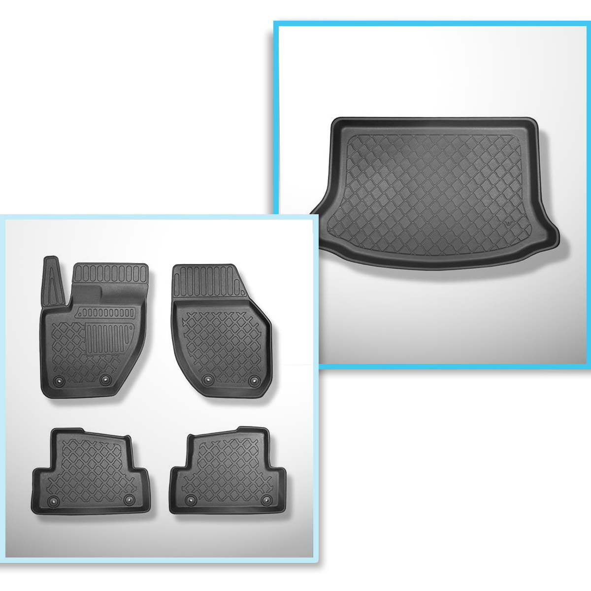 Sada rohož do zavazadlového prostoru a autokoberečky TPE na míru do: Volvo V40 II Hatchback (07.2012-07.2019) - spodní zavazadlový prostor; pro automobily bez dvojité podlahy v zavazadlovém prostoru