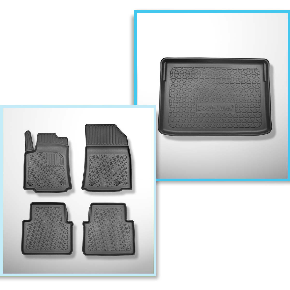 Sada rohož do zavazadlového prostoru a autokoberečky TPE PREMIUM na míru do: Citroen C3 Aircross II SUV (11.2017-2024) - horní zavazadlový prostor; modely s pohyblivou podlahou zavazadlového prostoru (Flex Floor)