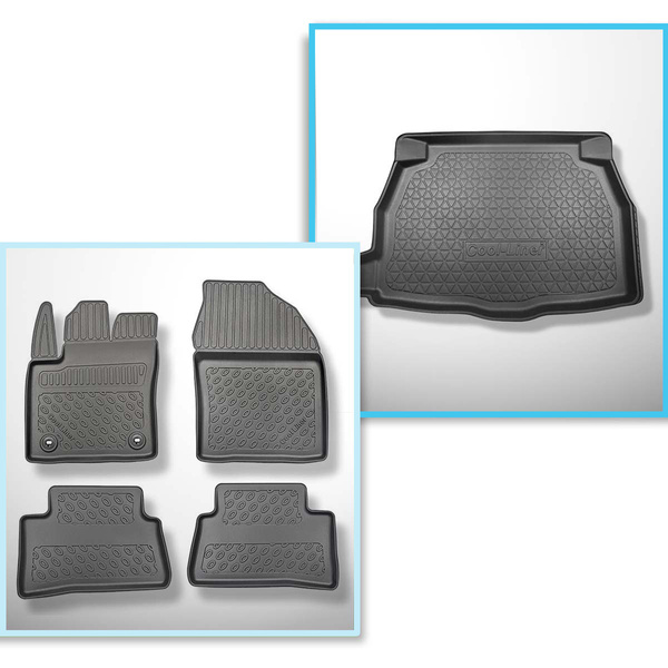 Sada rohož do zavazadlového prostoru a autokoberečky TPE PREMIUM na míru do: Toyota C-HR SUV (01.2017-12.2023) - s / bez subwooferu; možnost odstřihnutí pravého výklenku; také pro hybridy; ne pro verzi 2.0 Hybrid Dynamic Force