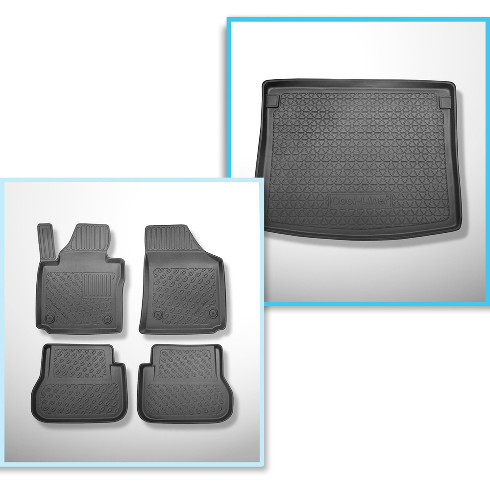 Sada rohož do zavazadlového prostoru a autokoberečky TPE PREMIUM na míru do: Volkswagen Caddy Startline Kombi (2004-10.2020) - 5 míst; plech na bočních stěnách zavazadlového prostoru