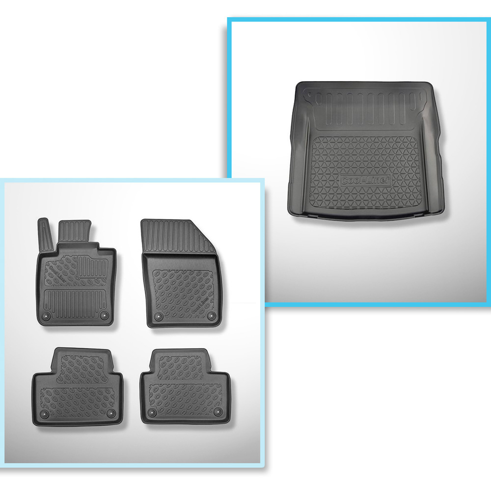 Sada rohož do zavazadlového prostoru a autokoberečky TPE PREMIUM na míru do: Volvo S60 III Sedan (10.2018-....) - spodní zavazadlový prostor; s dvojitou podlahou zavazadlového prostoru; ne pro Plug-in Hybrid