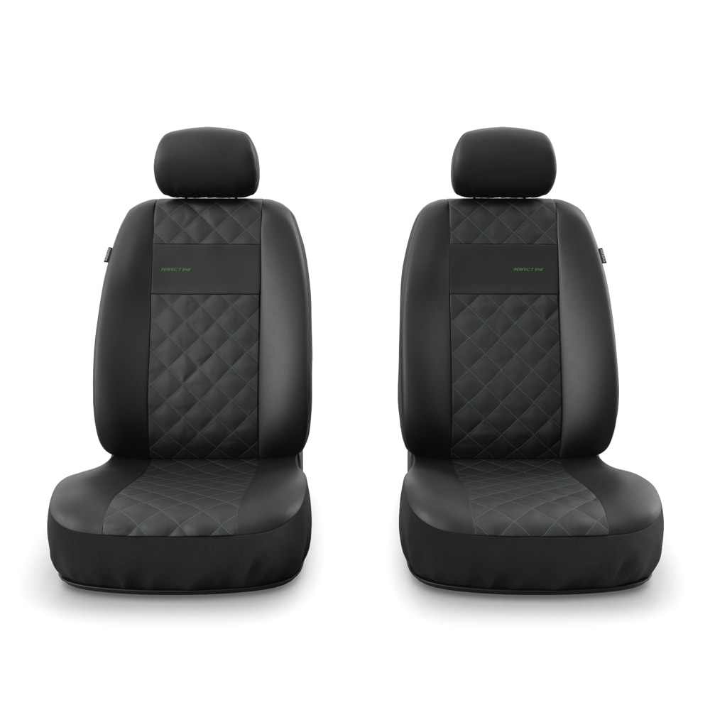 - Potahy jsou vyrobeny z pevné a skvrnám odolné umělé kůže v černé barvě. V prostřední části mají ozdobné, prošívání nití v zelené barvě. Přední potahy jsou navíc zdobeny výšivkou.