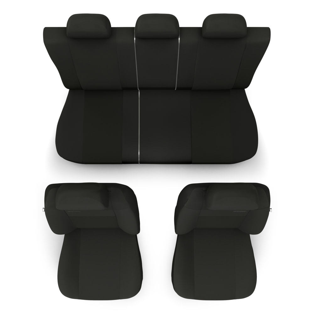 - Zadní potahy jsou vybaveny zipy, díky čemu jsou vhodné jak na zadní nedělená lavicová sedadla (celá), tak i na dělená lavicová sedadla 2/1 z pravé nebo levé strany.