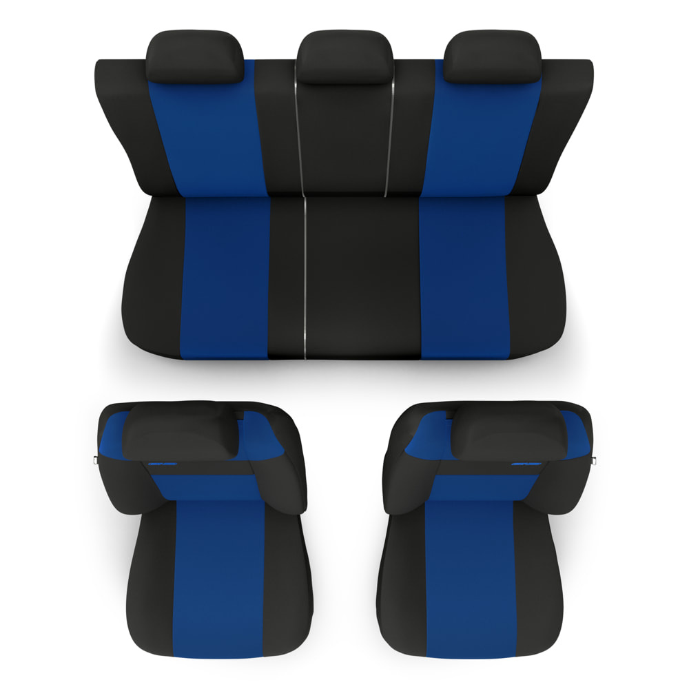 - Zadní potahy jsou vybaveny zipy, díky čemu jsou vhodné jak na zadní nedělená lavicová sedadla (celá), tak i na dělená lavicová sedadla 2/1 z pravé nebo levé strany.
