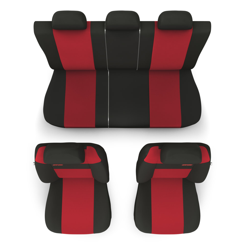 - Zadní potahy jsou vybaveny zipy, díky čemu jsou vhodné jak na zadní nedělená lavicová sedadla (celá), tak i na dělená lavicová sedadla 2/1 z pravé nebo levé strany.