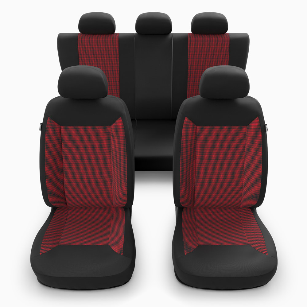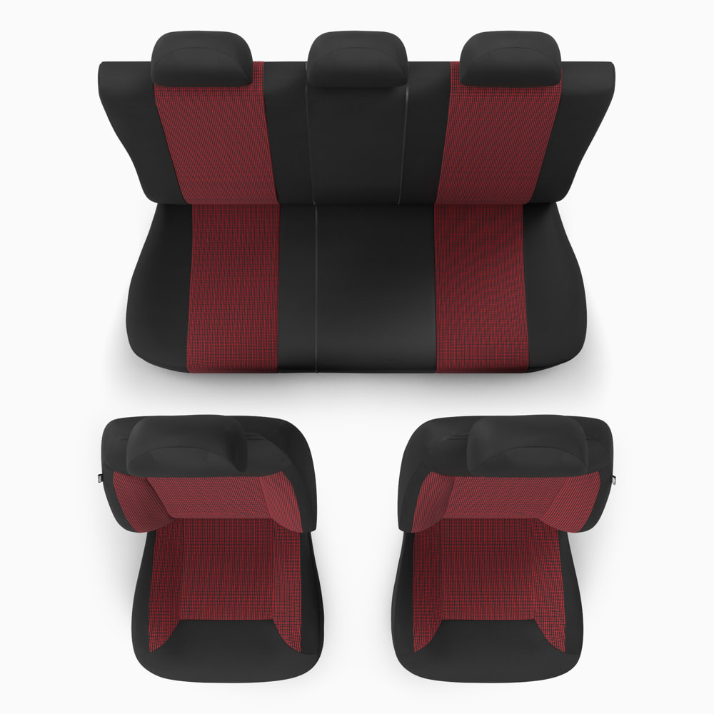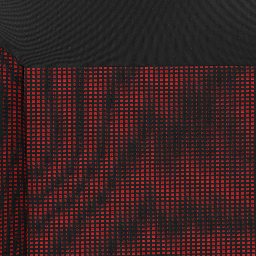 - Potahy jsou vyrobeny z čalounické látky v černé barvě, s žakárovou vložkou v červené barvě uprostřed.
