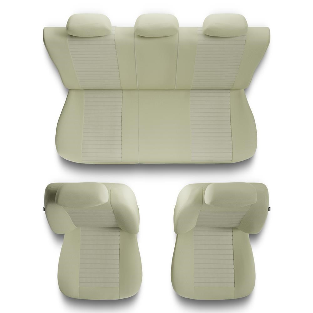 - Zadní potahy jsou vybaveny zipy, díky čemu jsou vhodné jak na zadní nedělená lavicová sedadla (celá), tak i na dělená lavicová sedadla 2/1 z pravé nebo levé strany.