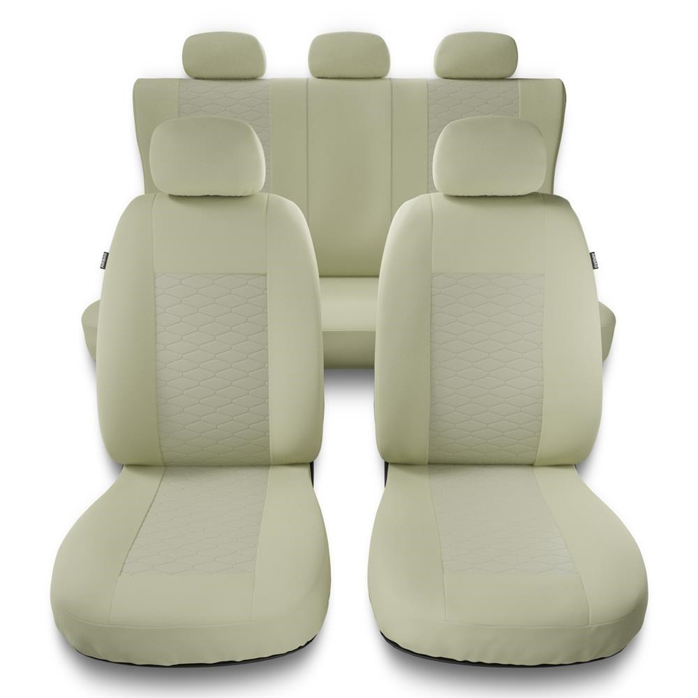 - Zadní potahy jsou vybaveny zipy, díky čemu jsou vhodné jak na zadní nedělená lavicová sedadla (celá), tak i na dělená lavicová sedadla 2/1 z pravé nebo levé strany.