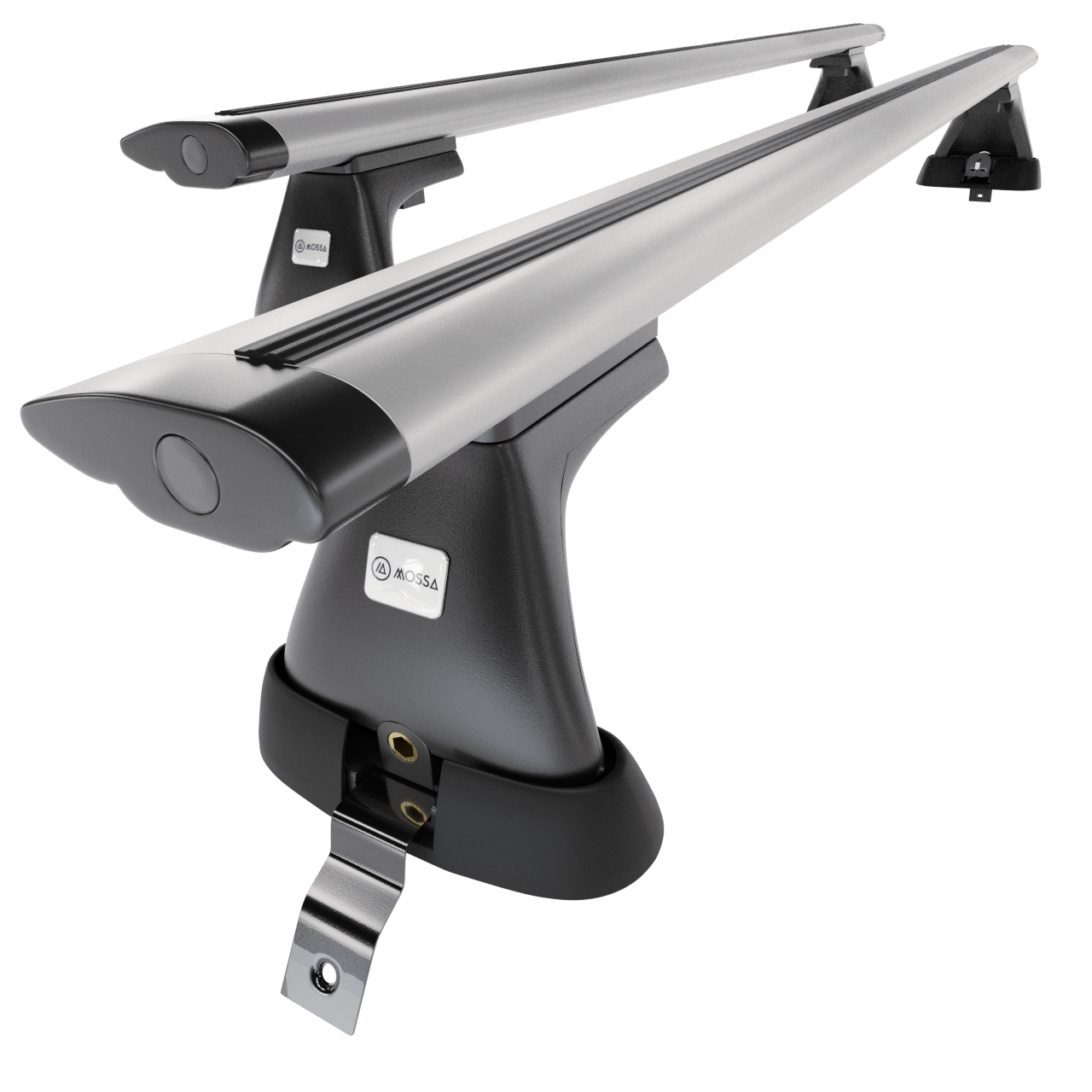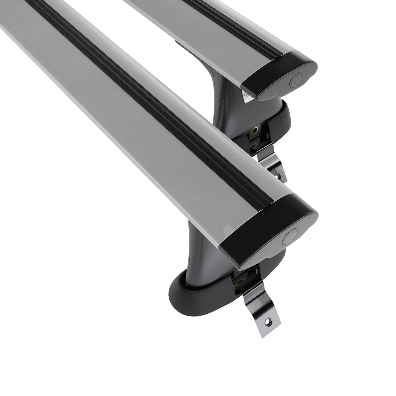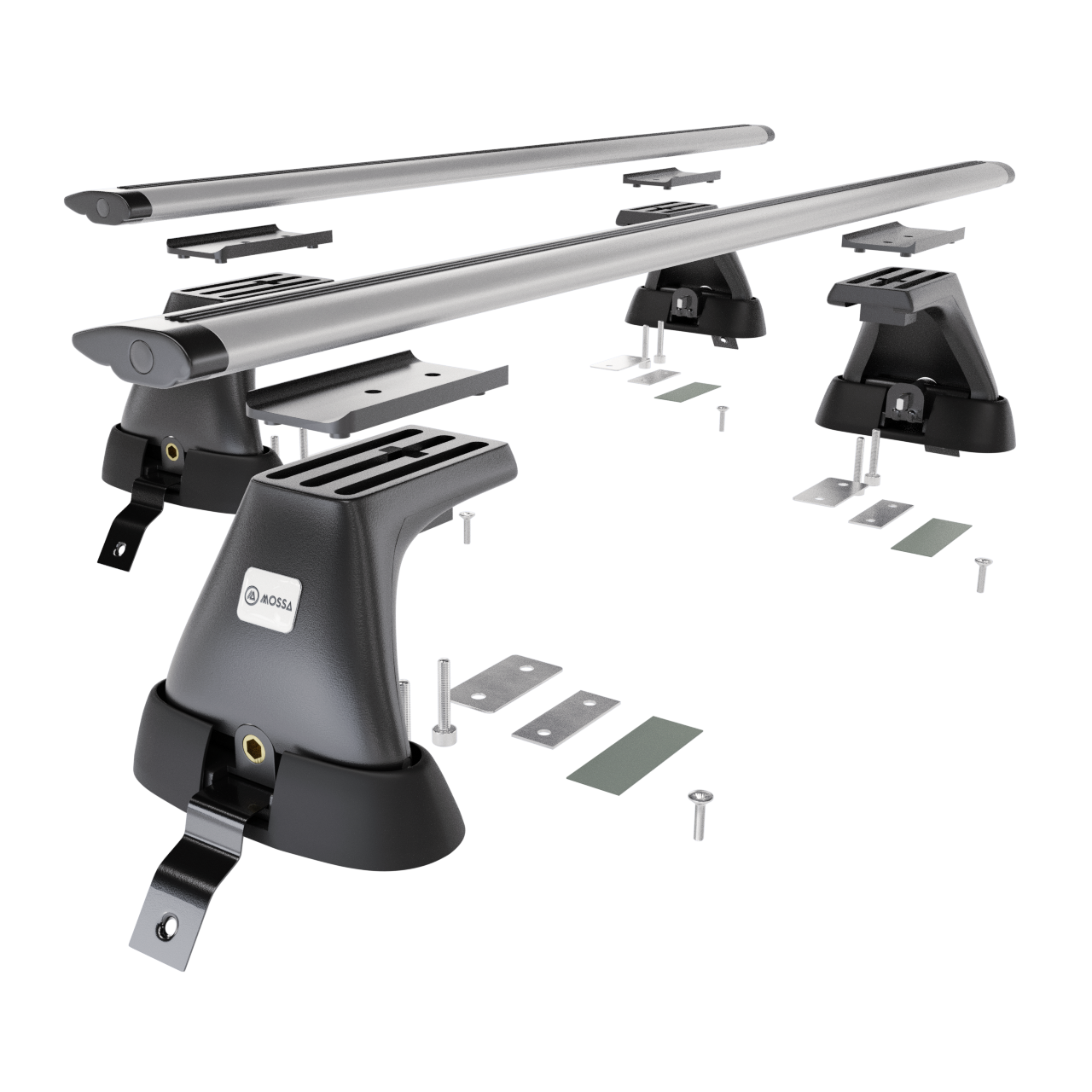- Základní střešní nosič se skládá ze 2 pevných hliníkových nosníků a 4 držáků (tzv. patek) <