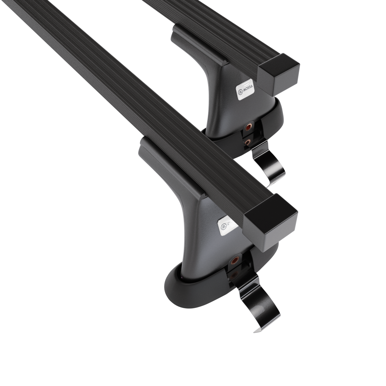 - Základní střešní nosič se skládá ze 2 pevných ocelových nosníků a 4 držáků (tzv. patek) <